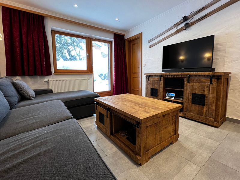 Ruime leefruimte met comfortabele zithoek en een traditioneel oostenrijkse eethoek. SmartTV met Sat, Soundbar, streaming 1000 series & films,...